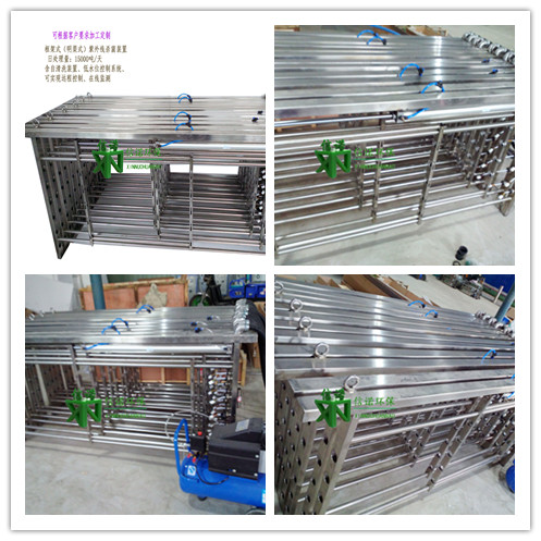 明渠式紫外線消毒設備應包括:紫外燈模塊組,模塊支架,配電中心,系統(tǒng)控制中心,水位探測及控制輸出等組成。